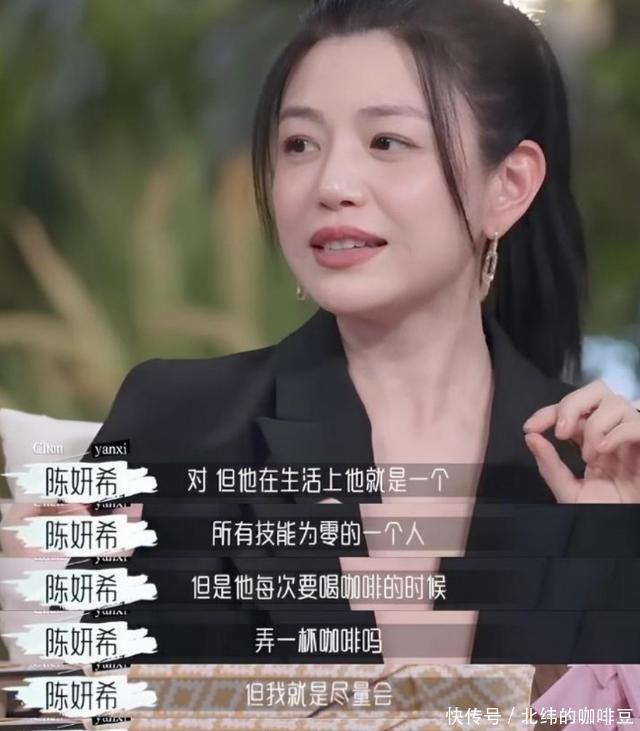 随着陈妍希上的综艺变多,镜头也不再局限于空荡的房子。 而她与陈晓生活上的点点滴滴,也成了节目素材的一部分。 比如,她说陈晓连做一杯咖啡都要自己鼓励,完全是个没有生活技能的人。