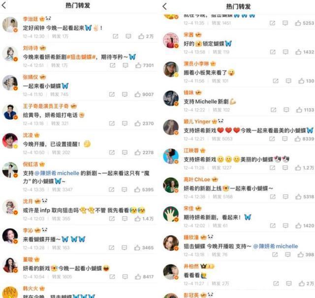 陈妍希新剧首播之际,还是受到了不小的关注。 像谢霆锋、宋佳、董璇、刘诗诗等两岸三地明星,纷纷都留言发声力挺她新剧播出。 看到这样的盛况,让人不由得感叹,她在圈内的人缘还是被低估了。